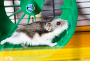 Det lille nuttede pelsdyr, hvis gener graver lange tunneller under jorden, samler forråd blandt træer og buske, det bliver sat ind i et firkantet bur, med lidt strøelse og nogle plastikdingenoter til underholdninger og – ikke at forglemme – hamsterhjulet til den fysiske adspredelse.